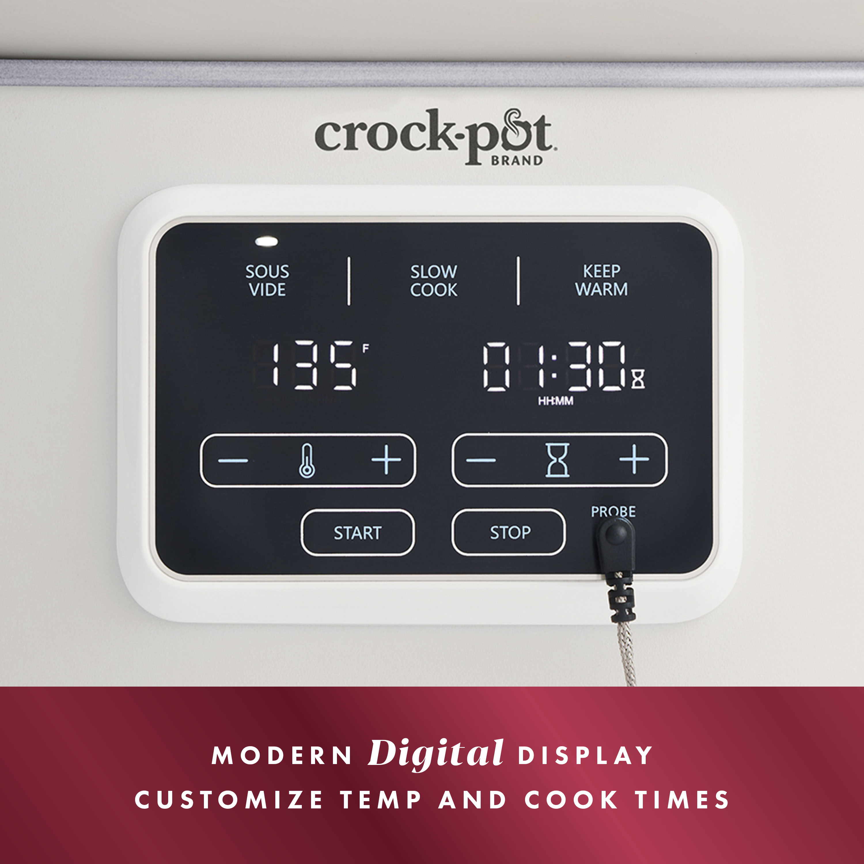 Make Restaurant-Quality Meals At Home, With The Crock-Pot Slow Cooker With Sous Vide And Removable Temperature Probe. Combining Slow Cooker Convenience And Precision With The Unrivaled Results Of A Sous Vide Machine, It’s Easy To Create Juicy, Nutrient-Rich, Perfectly Cooked Meats, Veggies, And Fish. The Innovative 6-Quart Stoneware Design Offers More Usable Cooking Space*, With A Generous Base For Larger Cuts Of Meat And Family-Sized Meals. Digital Settings Program Cook Times From 5 Minutes To 30 Hours. The Keep Warm Mode Ensures Food Is Toasty Until Serving Time.