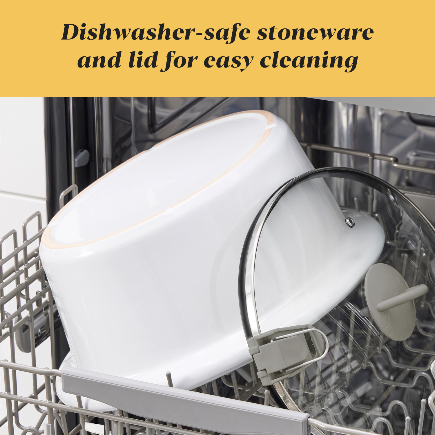 Dishwasher-Safe: Stoneware And Lid Are Both Dishwasher-Safe, For Easy Cleanup After Cooking Is Complete